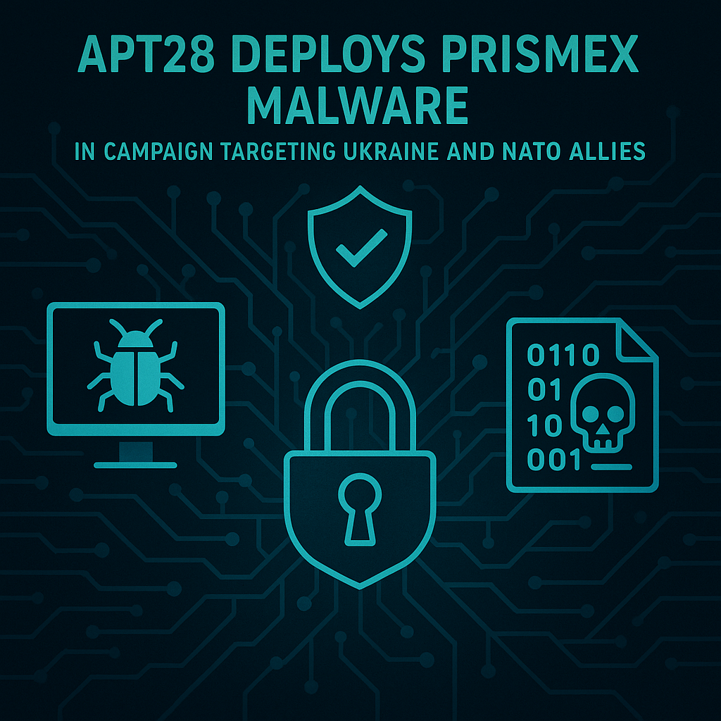 APT28 lançou uma campanha de spear-phishing para implantar malware PRISMEX direcionado à Ucrânia e aliados. PRISMEX usa esteganografia, sequestro de COM e abuso de nuvem para C2.