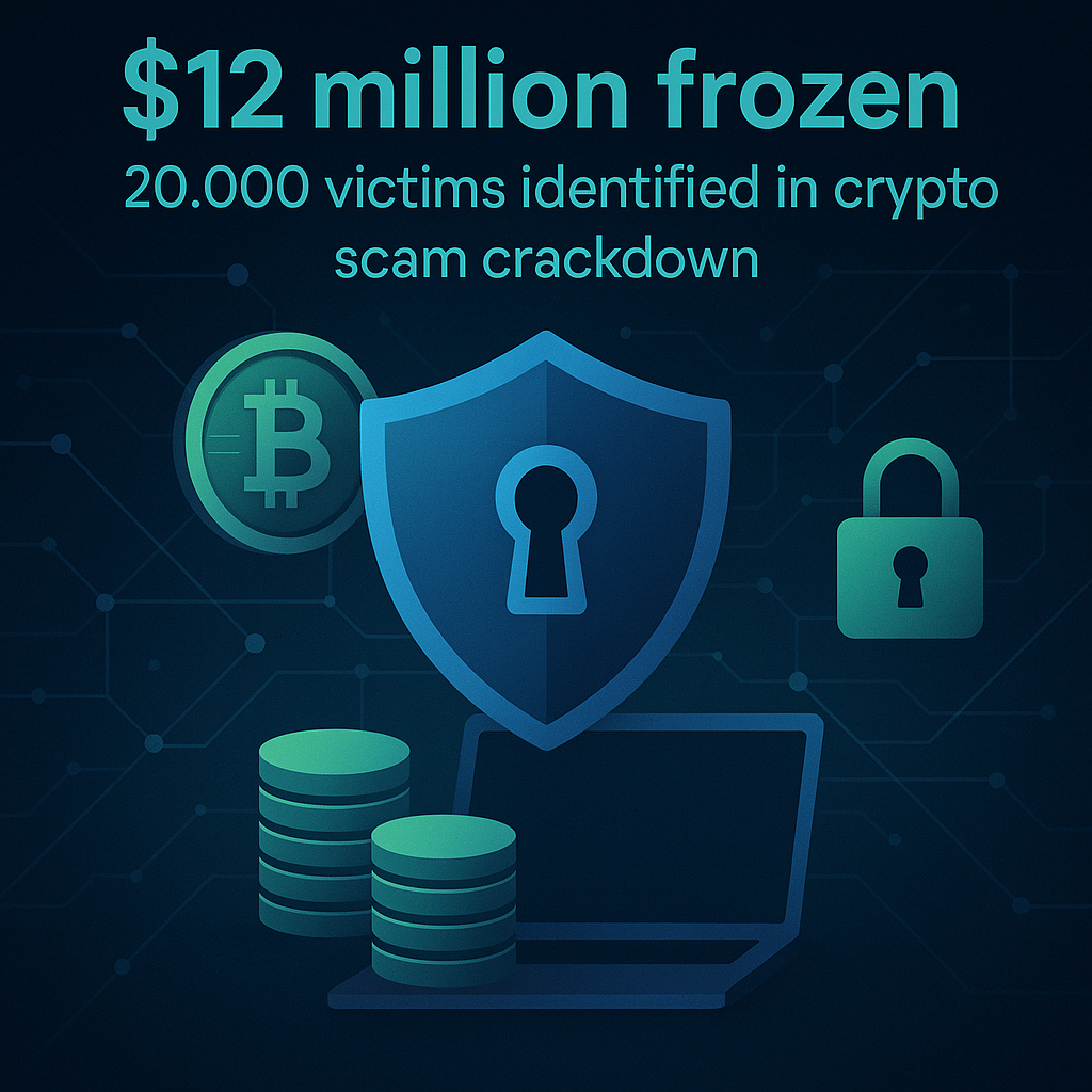 Mais de US$ 12 milhões congelados e 20.000 vítimas identificadas em uma repressão internacional a golpistas de criptomoedas. Mais de US$ 45 milhões em perdas por fraude descobertas globalmente.
